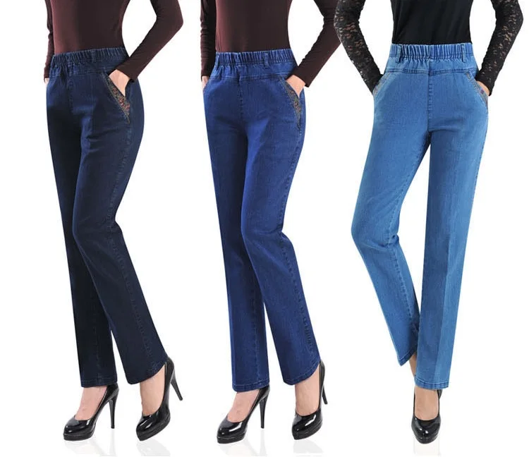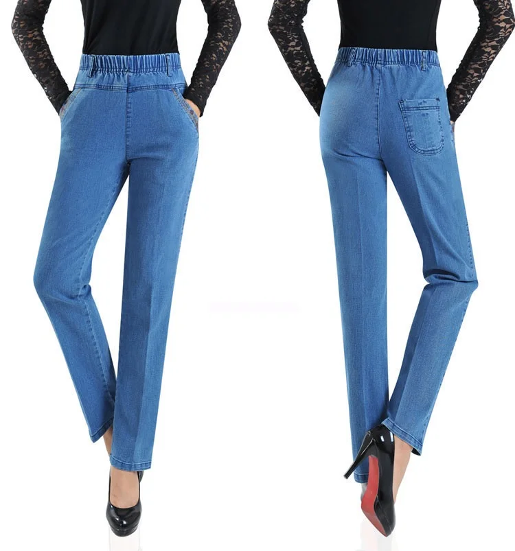 2022 New Jeans Female Denim Pants Loose Womens Jeans High Waist Elastic Straight Pants Casual Vintage Trousers P294