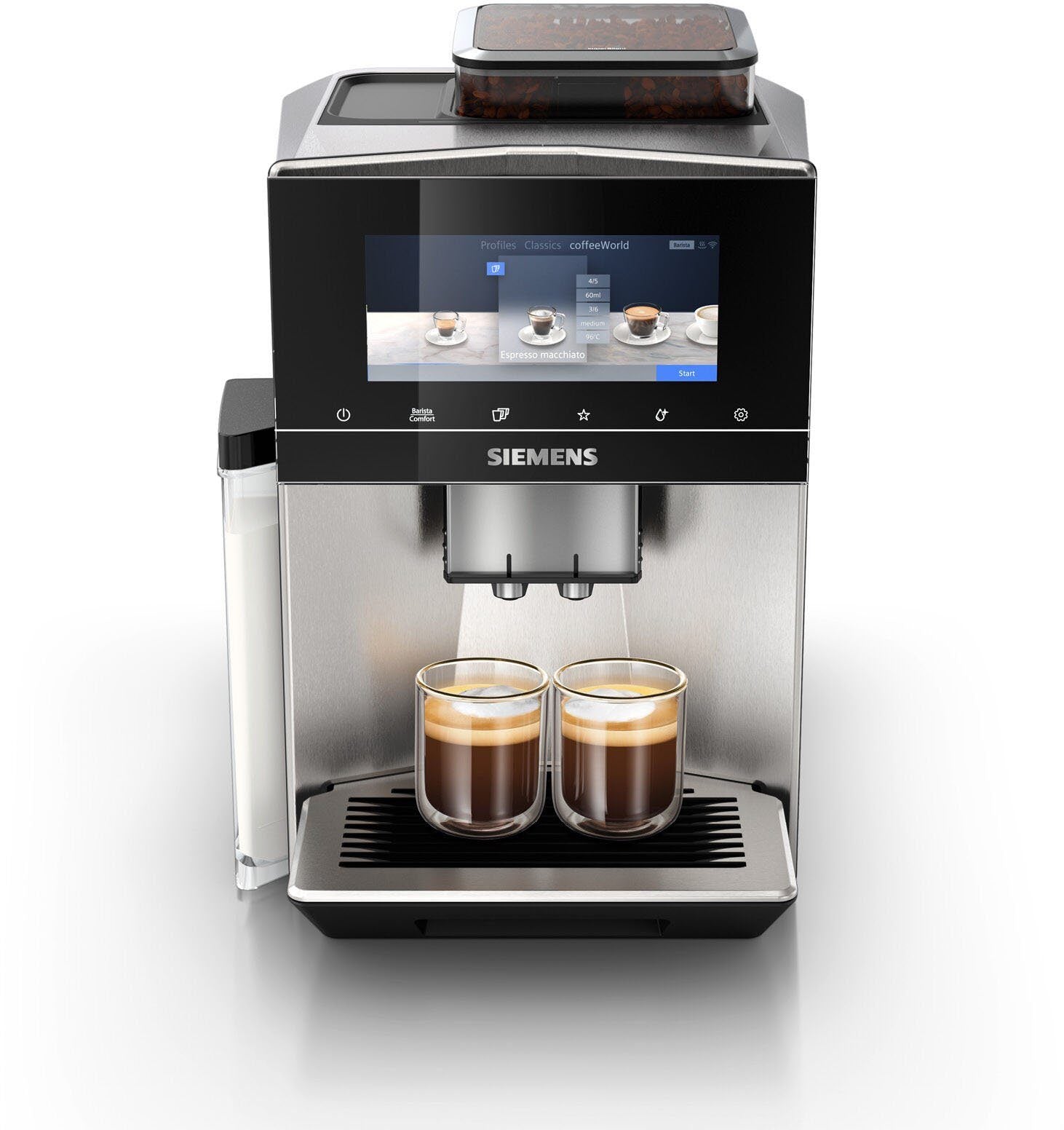 Siemens Kaffeevollautomat EQ900 in Edelstahl "TQ903D43" - Das intuitive Full-Touch Display bietet dir Kontrolle über jede Kaffeenuance - ganz wie ein Barista. Kontrolliere alle relevanten Brühparameter für nuancierten Kaffeegenuss – baristaMode.